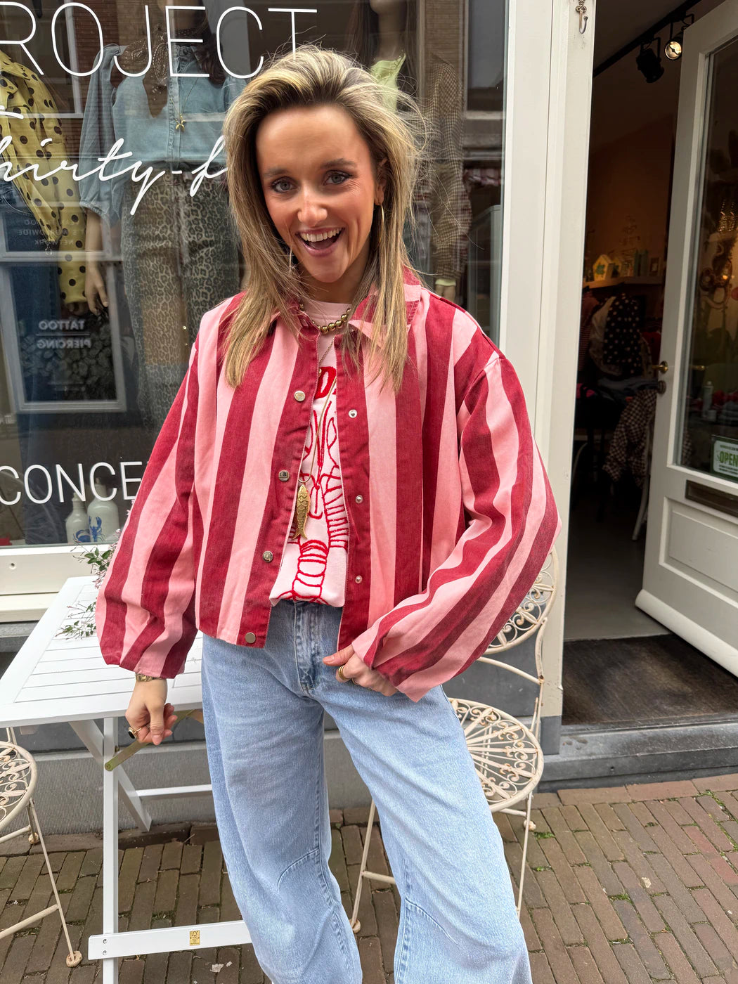 Tess jasje roze/bordeaux gestreept