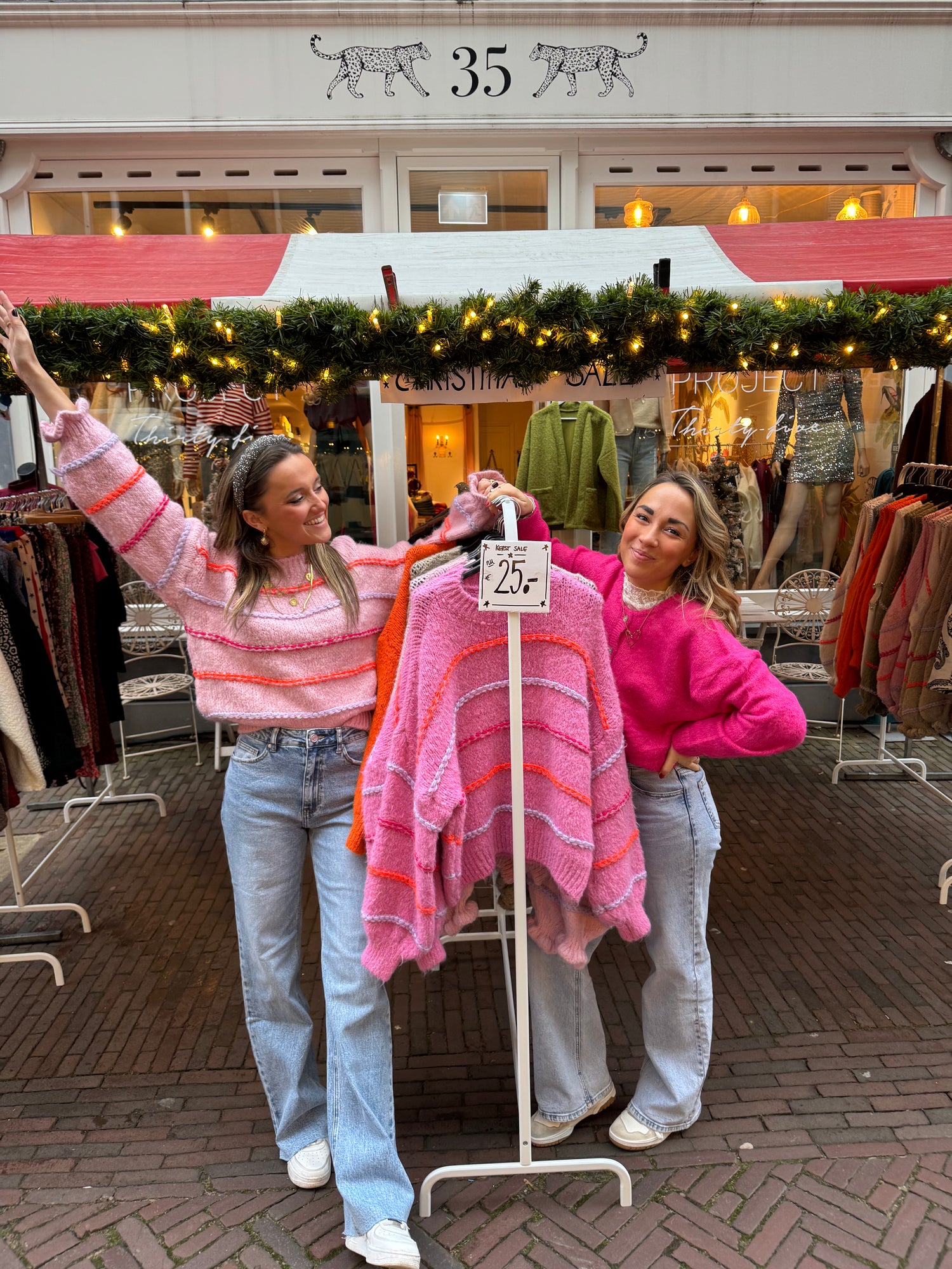 De winkel is zó gezellig deze dagen: de leukste truien in de mooiste kleuren en buiten rekjes met heel veel uitverkoop!