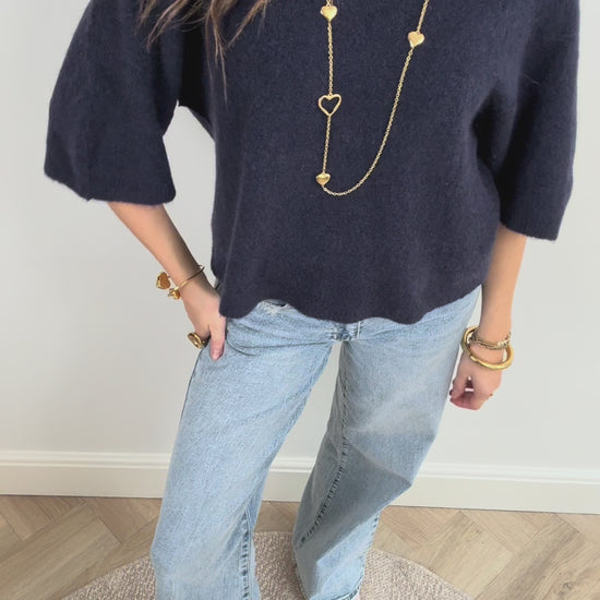 Onze heerlijke Bella knit is echt een heerlijk truitje voor de herfst en winter. Het truitje heeft een driekwart mouw en is gemaakt van een heerlijke zachte stof (kriebelt niet!).