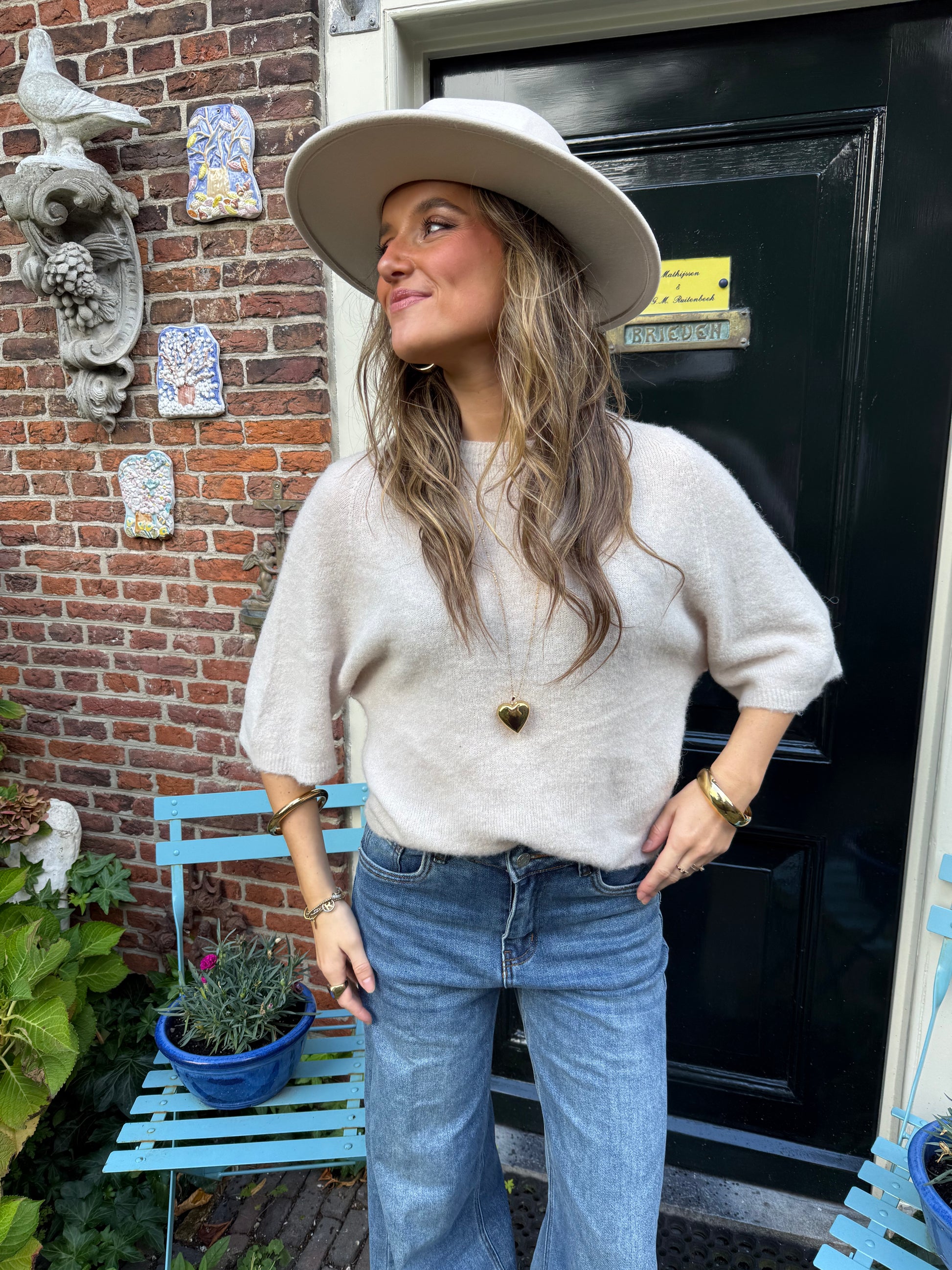 Onze heerlijke Bella knit is echt een heerlijk truitje voor de herfst en winter. Het truitje heeft een driekwart mouw en is gemaakt van een heerlijke zachte stof (kriebelt niet!).