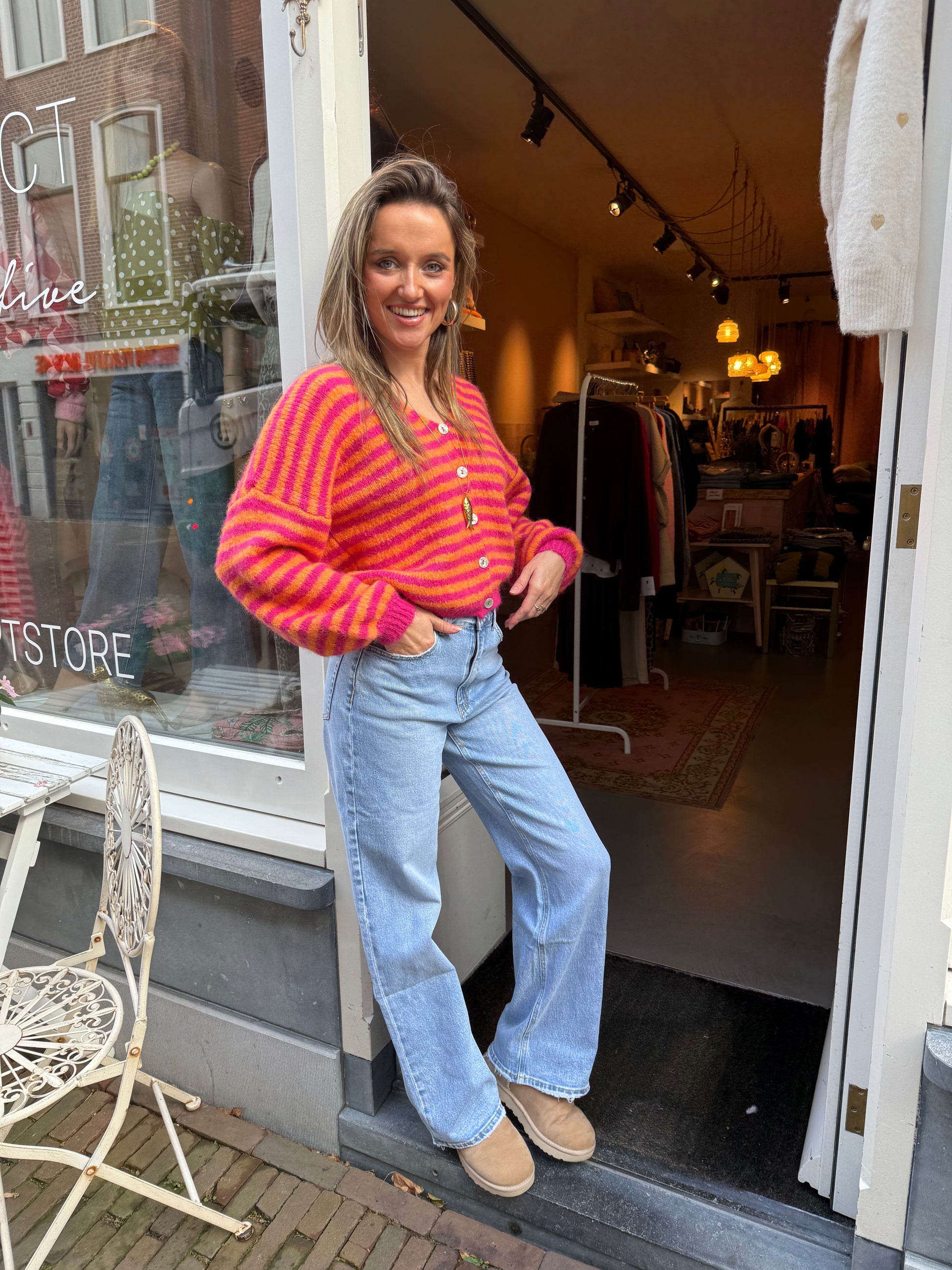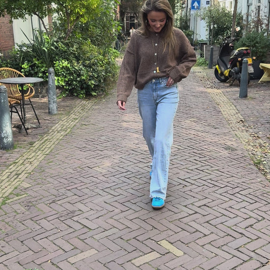 Onze bestseller wide leg jeans in een prachtige lichte wassing. In de winkel is dit onze best verkochte jeans. Hij sluit perfect aan, is mooi afgewerkt en blijft mooi met de jaren.
