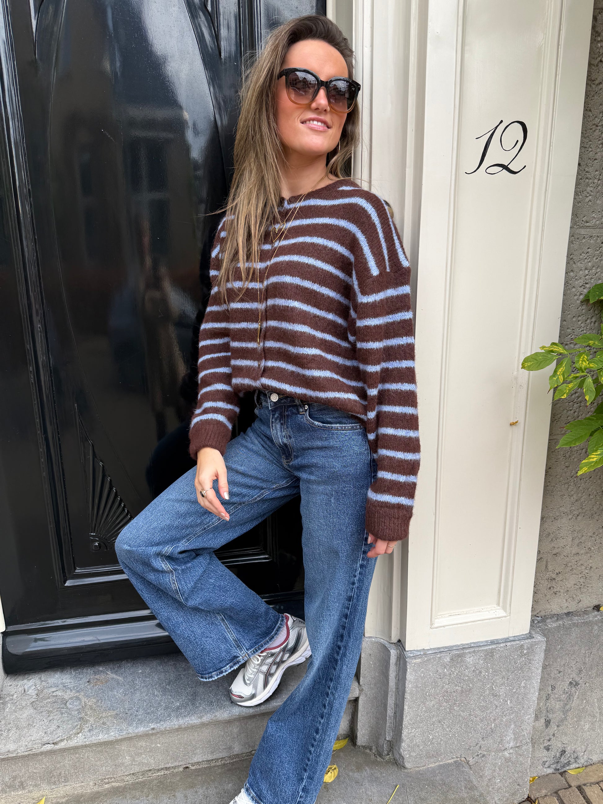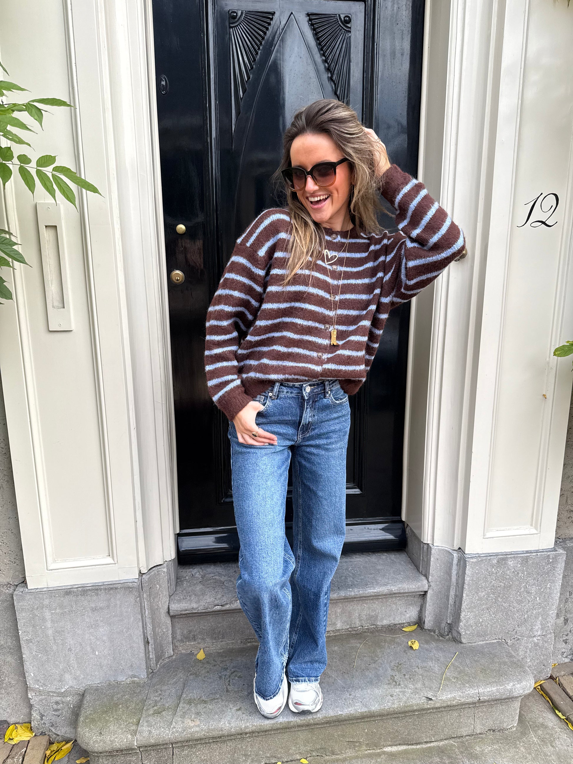 Gigi cardigan brown/blue striped