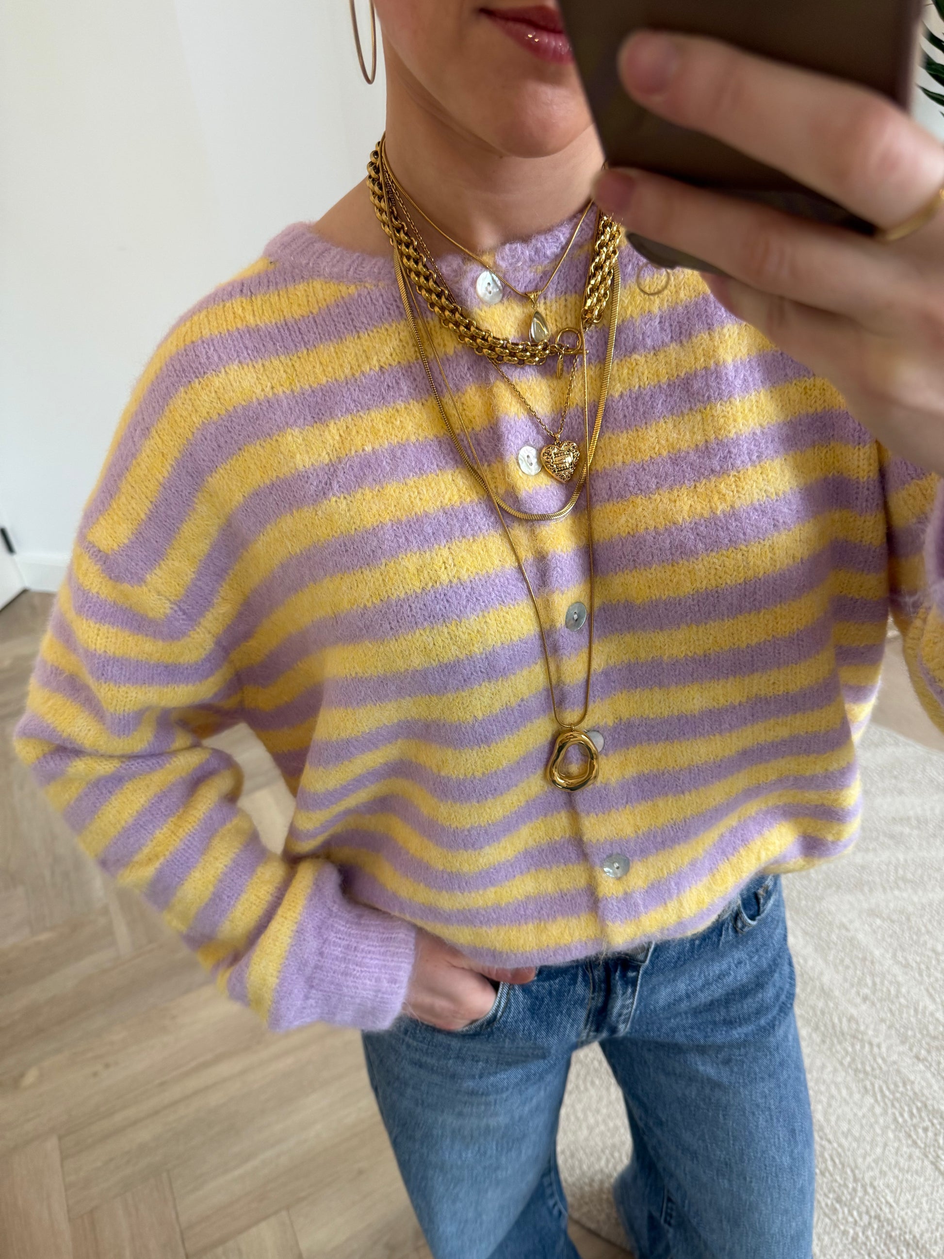 Het Gigi vestje is echt een musthave in jouw kledingkast! Hoe leuk is deze gestreepte?! Te dragen als trui, als vestje, of achterstevoren met de knoopjes op de rug. Het vest is heerlijk zacht en valt een beetje oversized.