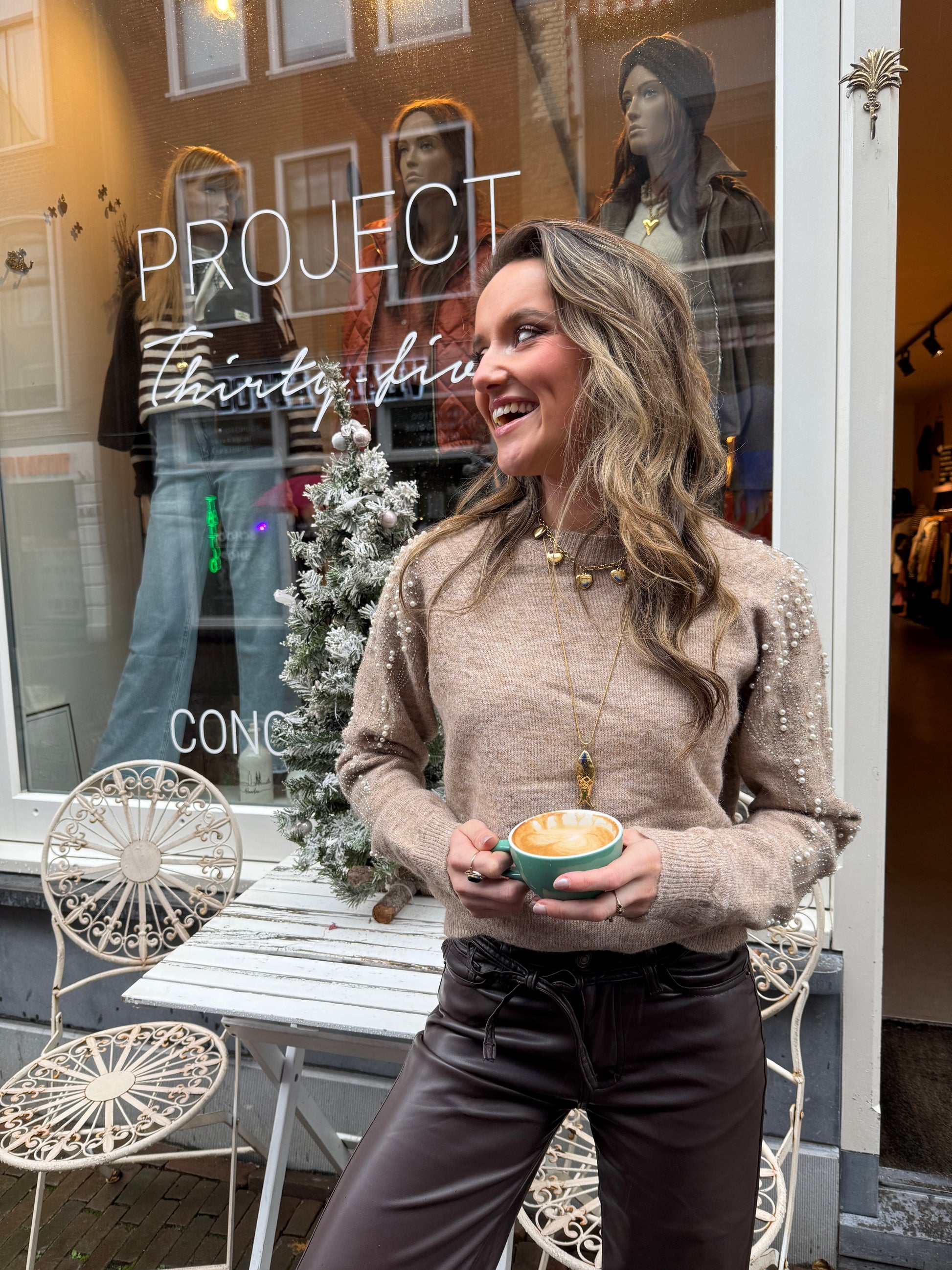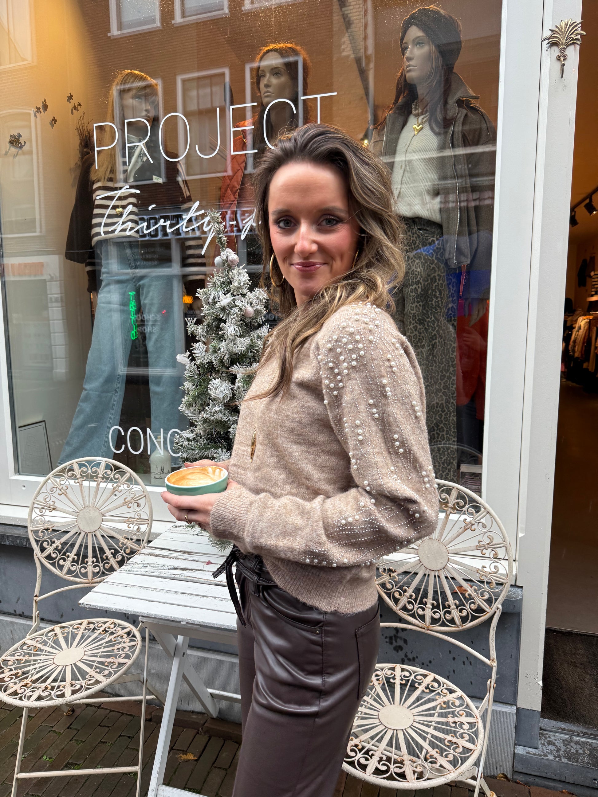 Elegant & vrouwelijk, maar ook zacht & comfortabel, dat is onze Mara trui! Een prachtige pasvorm met parels en kraaltjes op de mouwen en schouders.