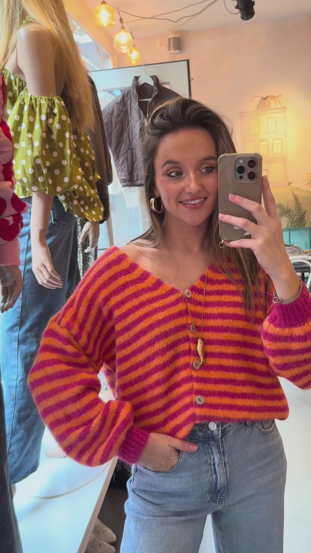 Onze bestseller knits voor dit seizoen: de Maya knit! Een heerlijk oversized model, met een v-hals en mooie knoopjes. Zowel open als dicht te dragen.