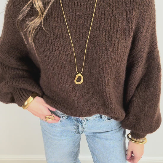 Onze Nova knit is een heerlijke oversized trui, perfect voor de herfst en winter. De trui is warm en heerlijk zacht!