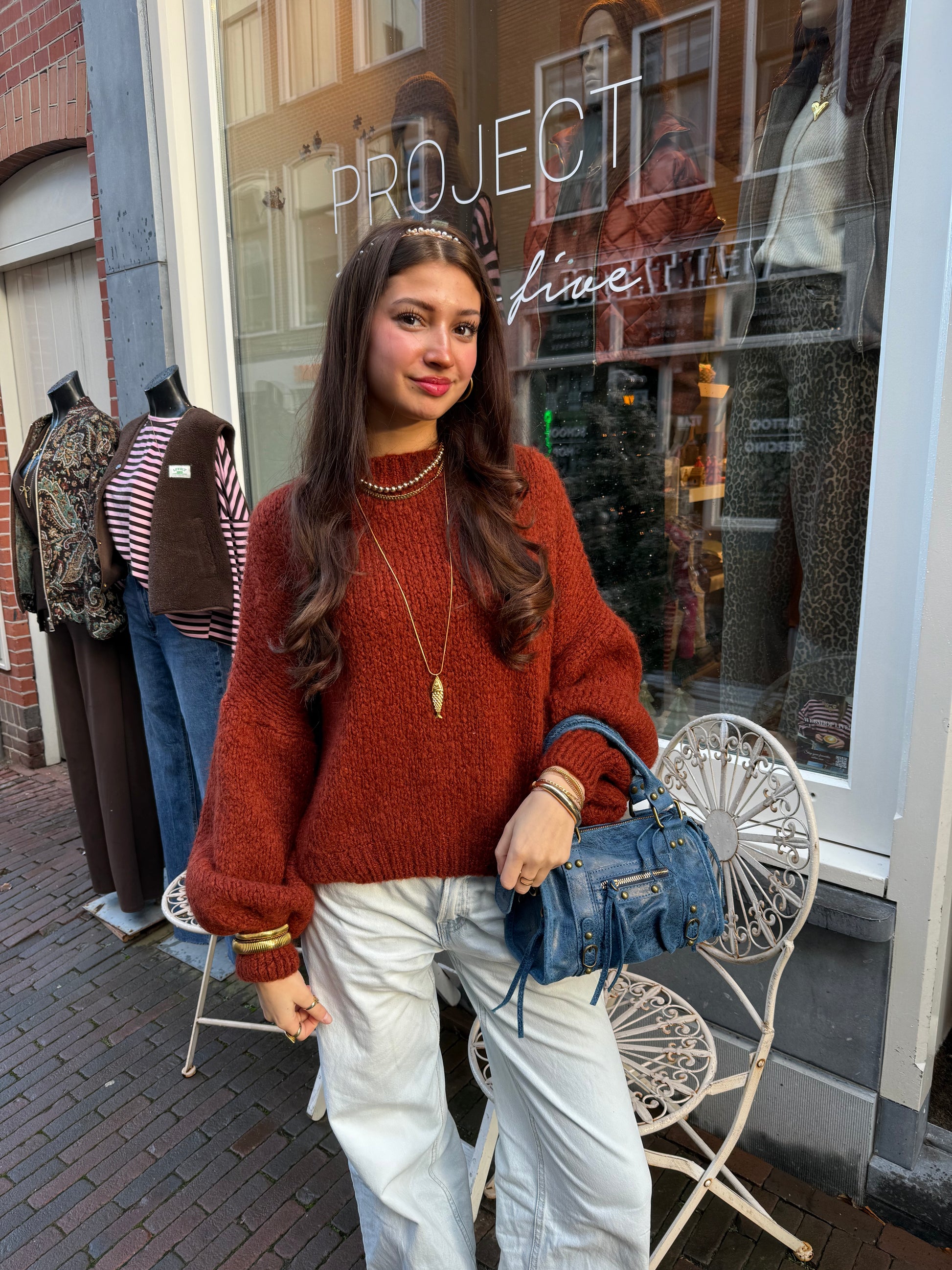 Onze Nova knit is een heerlijke oversized trui, perfect voor de herfst en winter. De trui is warm en heerlijk zacht!