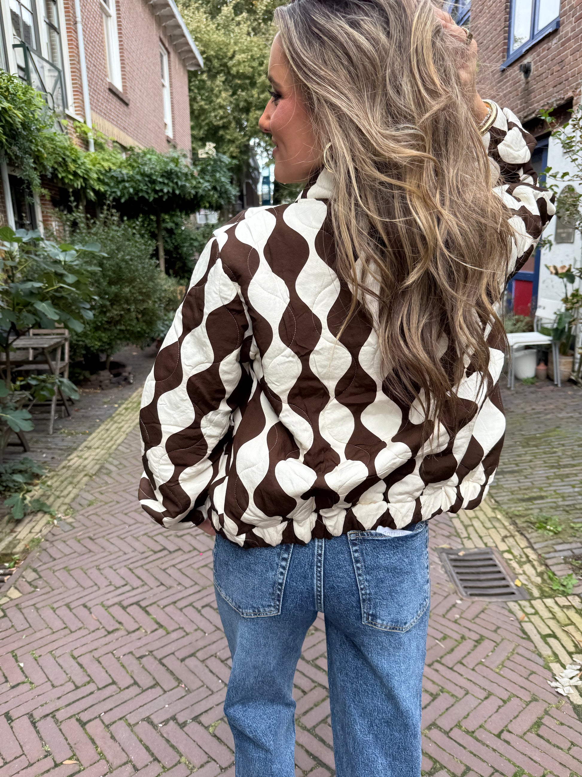 Deze bomber is perfect als tussenjasje in de herfst, of als binnenjasje in de winter. Leuk om te combineren met onze chocolate brown Bella knit!