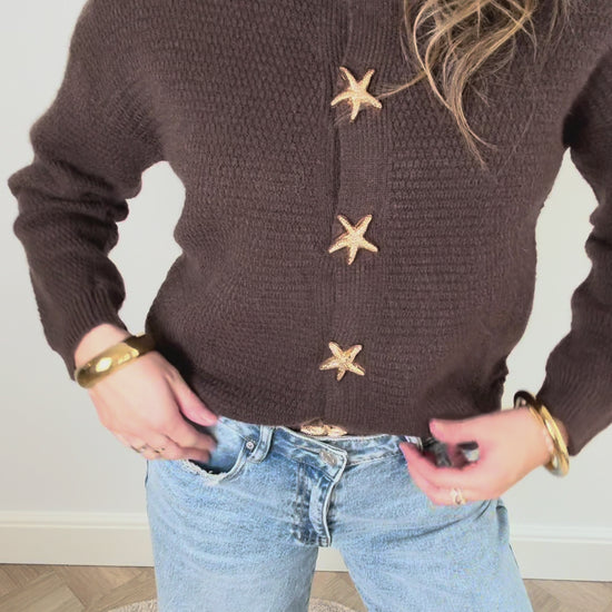 Een perfect vestje voor de herfst! In de trendy donkerbruine kleur en met mooie gouden zeester knopen.