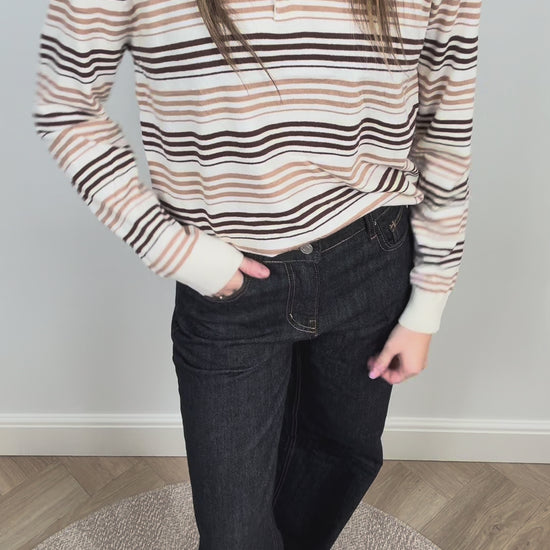 Hoe leuk is deze gestreepte polo? Heerlijk zacht en leuk te combineren met een van onze teddy gilets!