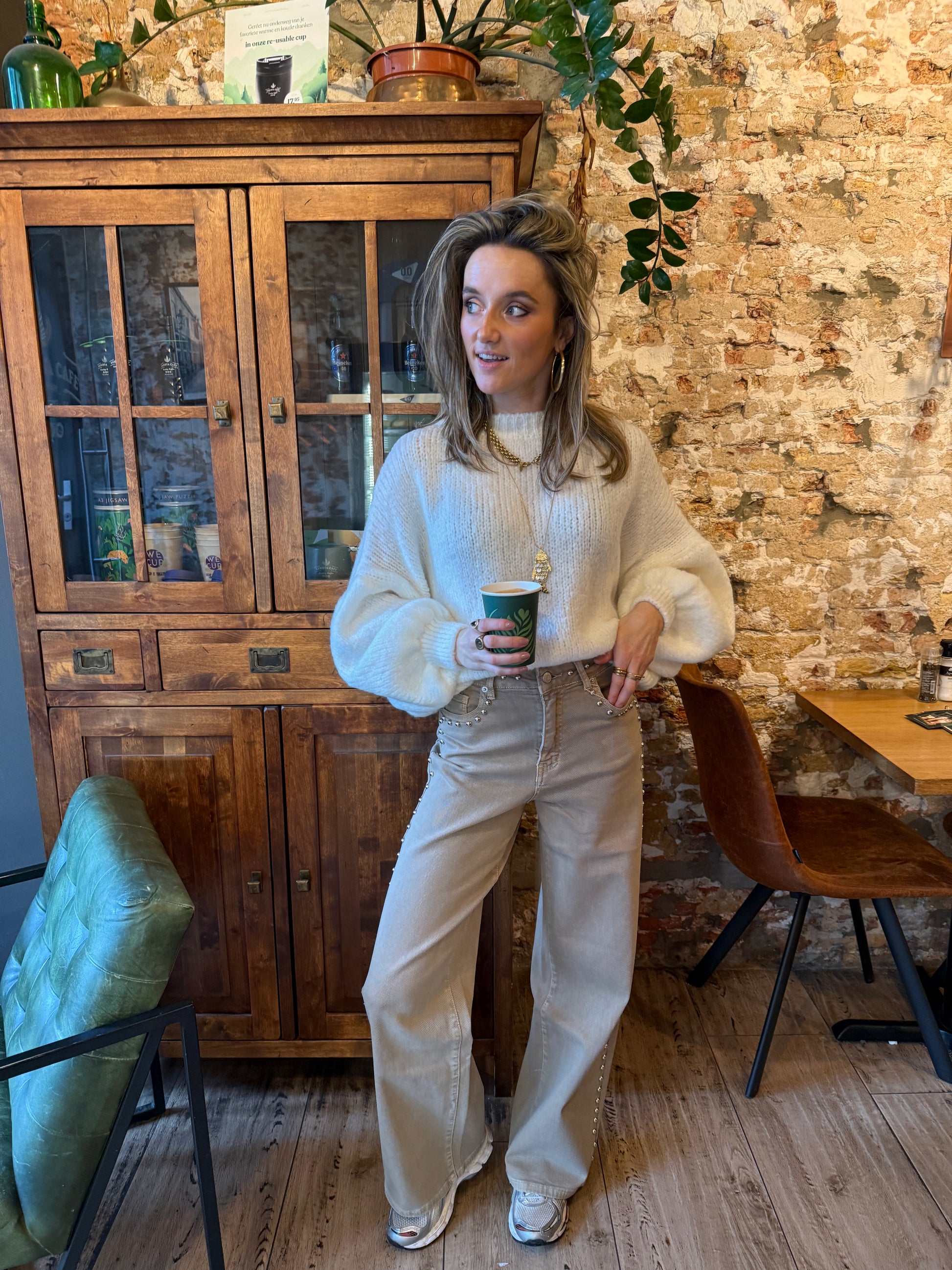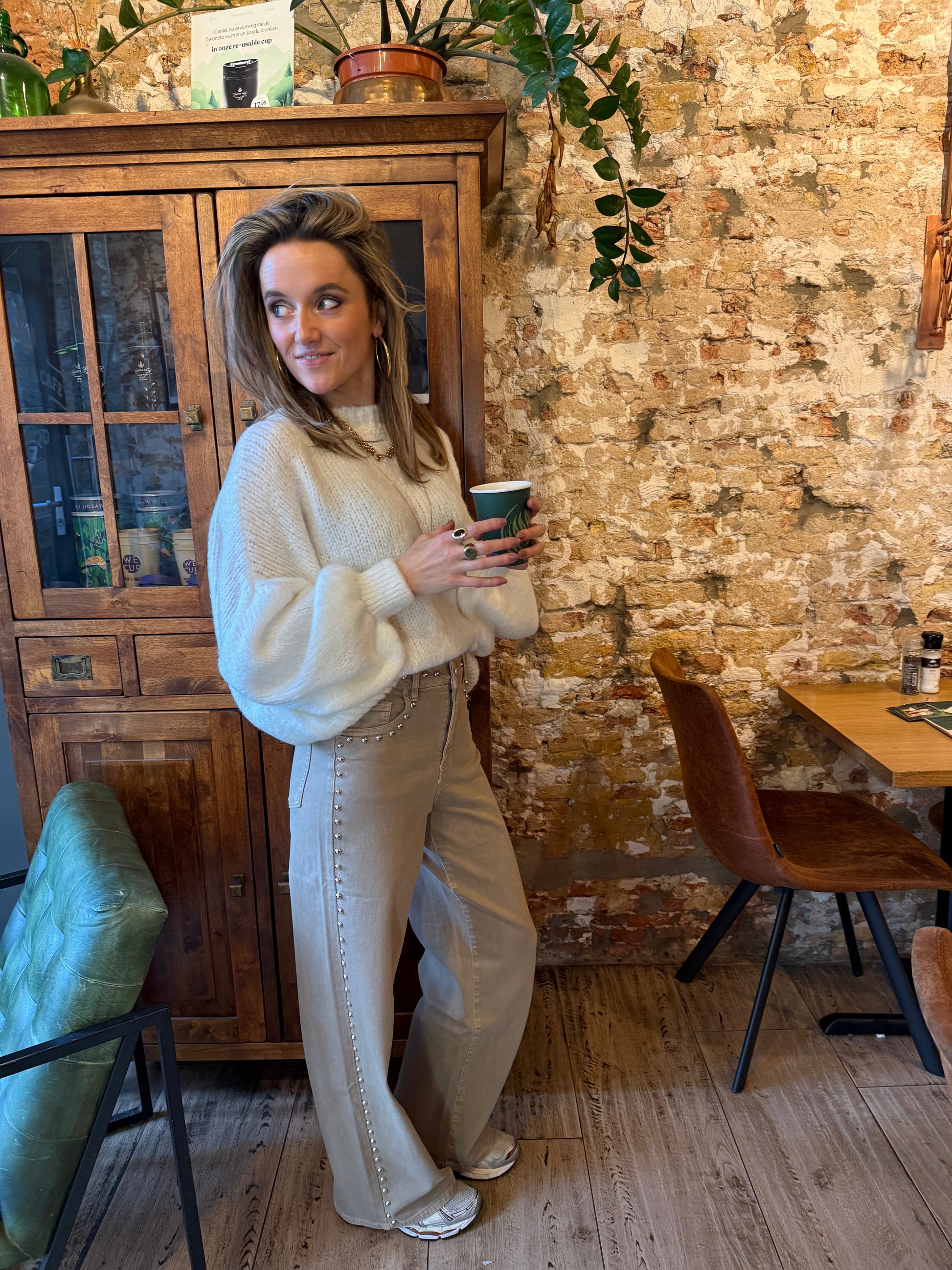 Deze jeans met studs maakt jouw outfit echt uniek! De jeans is high waisted, valt mooi lang en bevat heel veel stretch, waardoor hij heerlijk zit.